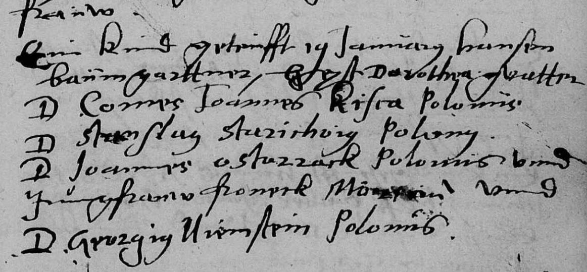 More strikingly, the record in 1564 for his daughter Dorotha is a veritable who’s who of godparents, including a large number of Polish-Lithuanian nobility who were in Basel at the time, studying under the scholar Celio Secondo Curione. These include: